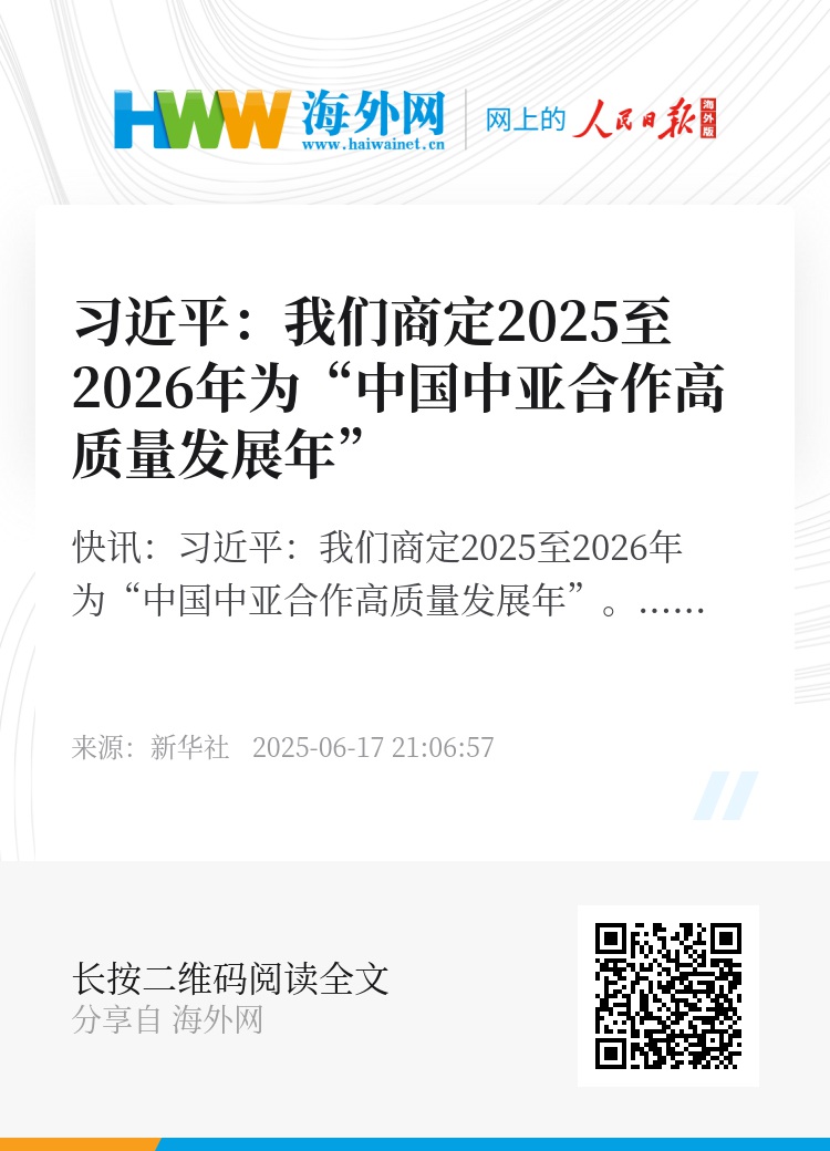 新华社快讯:习近平:我们商定2025至2026年为“中国中亚合作高质量发展年”。