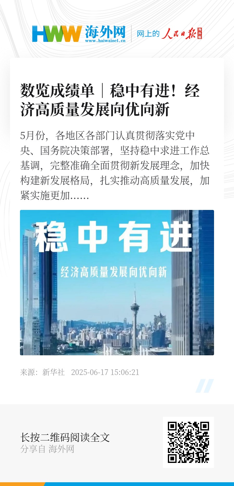 5月份,各地区各部门认真贯彻落实党中央、国务院决策部署,坚持稳中求进工作总基调,完整准确全面贯彻新发展理念,加快构建新发展格局,扎实推动高质量发展,加紧实施更加积极有为的宏观政策,国民经济顶住压力平稳运行,生产需求稳定增长,就业形势总体稳定,新动能成长壮大,高质量发展向优向新。