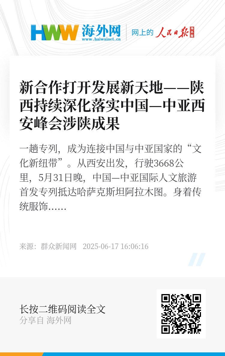 陕西出台一系列利好政策,助力更多企业走出去乘风破浪;先后派出多批次高规格代表团出访中亚,接待中亚国家团组来陕访问,务实合作硕果累累。