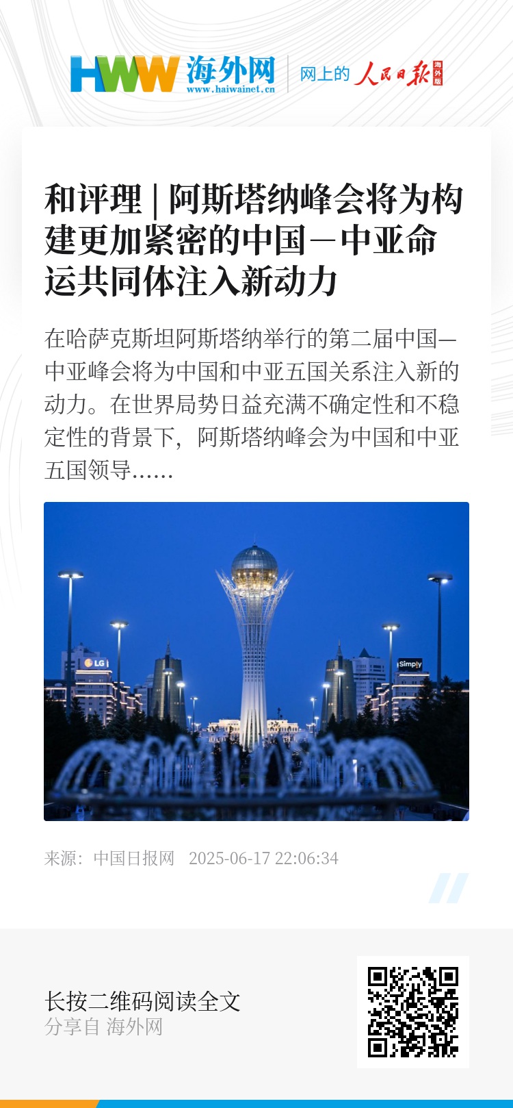 求同存异,务实合作,符合各方共同利益。中国和中亚五国在新能源、数字经济、农业技术、气候变化、减灾防灾等领域的合作蓬勃发展,不是为了对抗任何一方,而是为了满足人民需求。本次阿斯塔纳峰会将进一步加强双方合作,在双方经济互补性强、坚持多边主义的基础上,推动共同发展,促进共同繁荣。