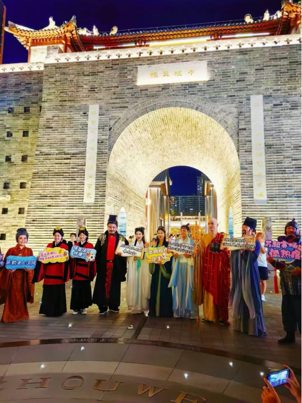 把握关键,生动阐释文化特色。在徐州体育中心生活市集的展位上,镇江文旅为主场的球迷准备了充足的文创IP礼品。在赛场的观众席上,镇江的“文旅方阵”不仅为球队加油助威,营造球场氛围,还“邀请”打破次元壁穿越而来的镇江名人:白素贞、许仙、辛弃疾、米芾通过集体快闪的表演,向全场3万名球迷展示镇江3000年文化底蕴与现代气息。