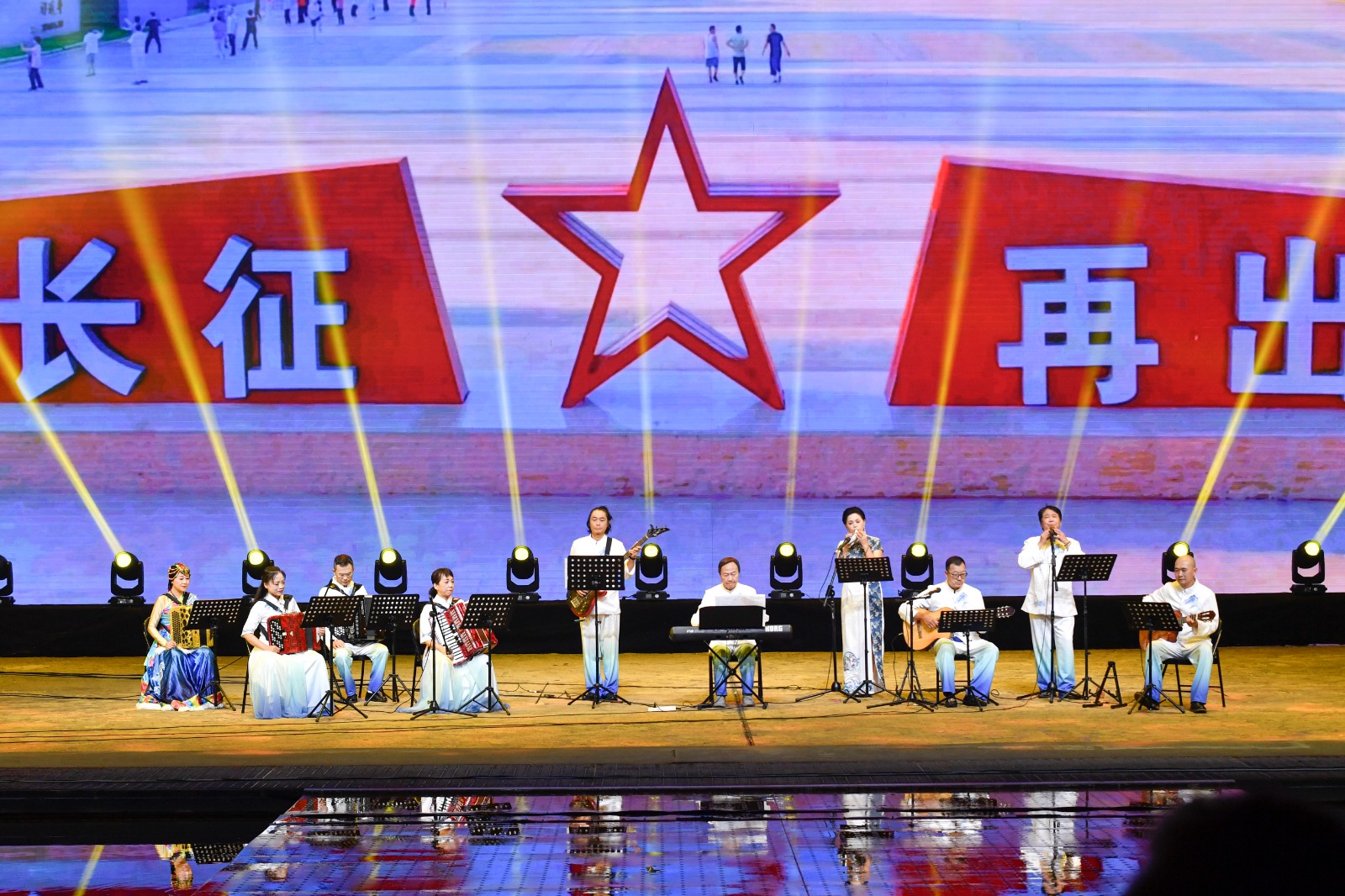 本场演出涵盖了大型舞蹈、独唱、合唱、器乐串烧、客家古文、古彩戏法等多种节目形式。中国传媒大学音乐与录音艺术学院声乐副教授汤非,中国煤矿文工团一级演员左炜,北京歌舞剧院一级演员金响,中国铁路文工团歌唱演员赵学飞、北京歌舞剧院歌唱演员张芸帆领衔献演,他们演唱了《故乡的云》《青春舞曲》《爱你一万年》《怒放的生命》《不忘初心》等家喻户晓的经典歌曲,现场观众反响热烈,随着悦耳的歌声挥舞着手中的荧光棒,自发地在观众席跟唱。中国铁路文工团魔术演员、魔术最高奖梅林奖获得者李克石表演的《金玉满堂》将演出氛围推上了高潮,精妙的手法引得观众掌声连连、赞叹不断。此外,于都县长征源合唱团、《长征第一渡》剧团演绎了伟大的长征精神、展现了永不褪色的红色信仰。于都客家古文国家级非遗传承人带领阳明学校学生带来的《童声喜唱新时代》唱响了赣南革命老区人民对新时代的赞美。于都县文化馆用群舞《爱莲说》穿越古今,展现清官廉吏的坚定信念。章贡“侨之音”艺术团用乐器为全体观众献上红土地上“侨”的祝福。