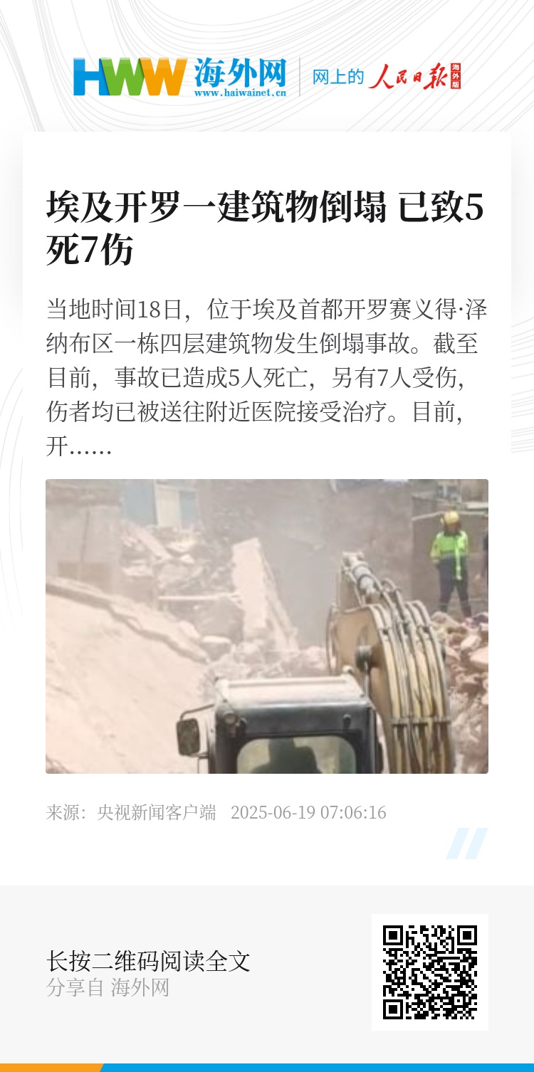 目前,开罗民防部门正在会同有关机构在废墟中搜寻幸存者,附近居民均已被疏散至安全区域。(总台记者 吴爱民)