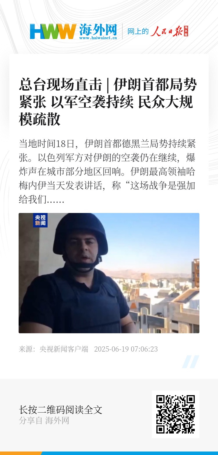互联网服务目前仍可使用,但在部分地区受到限制和干扰,推测可能是出于安全考虑。尽管如此,持续的冲突和未来的不确定性仍深刻影响着德黑兰市民的日常生活。(总台记者 李健南 张卓雅 报道员 侯赛因)