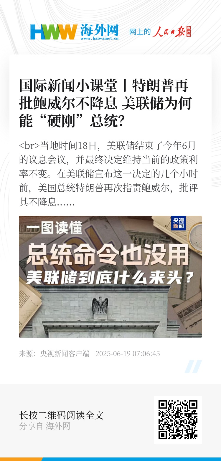 当地时间18日,美联储结束了今年6月的议息会议,并最终决定维持当前的政策利率不变。