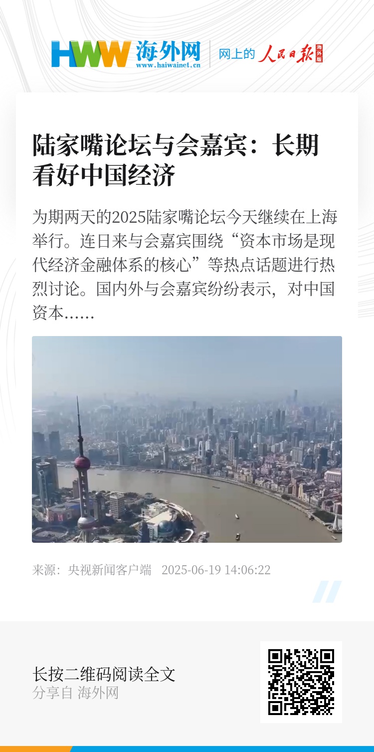 为期两天的2025陆家嘴论坛今天继续在上海举行。连日来与会嘉宾围绕“资本市场是现代经济金融体系的核心”等热点话题进行热烈讨论。国内外与会嘉宾纷纷表示,对中国资本市场充满信心,并长期看好中国经济。