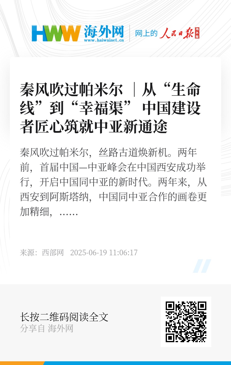“相知无远近,万里尚为邻。”从沙漠边缘穿行的A380公路到延伸至村民门口的乡村公路,从滋养田地的灌溉水渠到田间隆起的“河道”,来自中国建设者的毅力和坚持让人动容。一路走来,记者真实感受到“一带一路”倡议下的魅力,采访中,听到当地人说得最多的就是,我们是好朋友,永远的好朋友。就像那吹过帕米尔的秦风,中乌友谊温暖而长久。