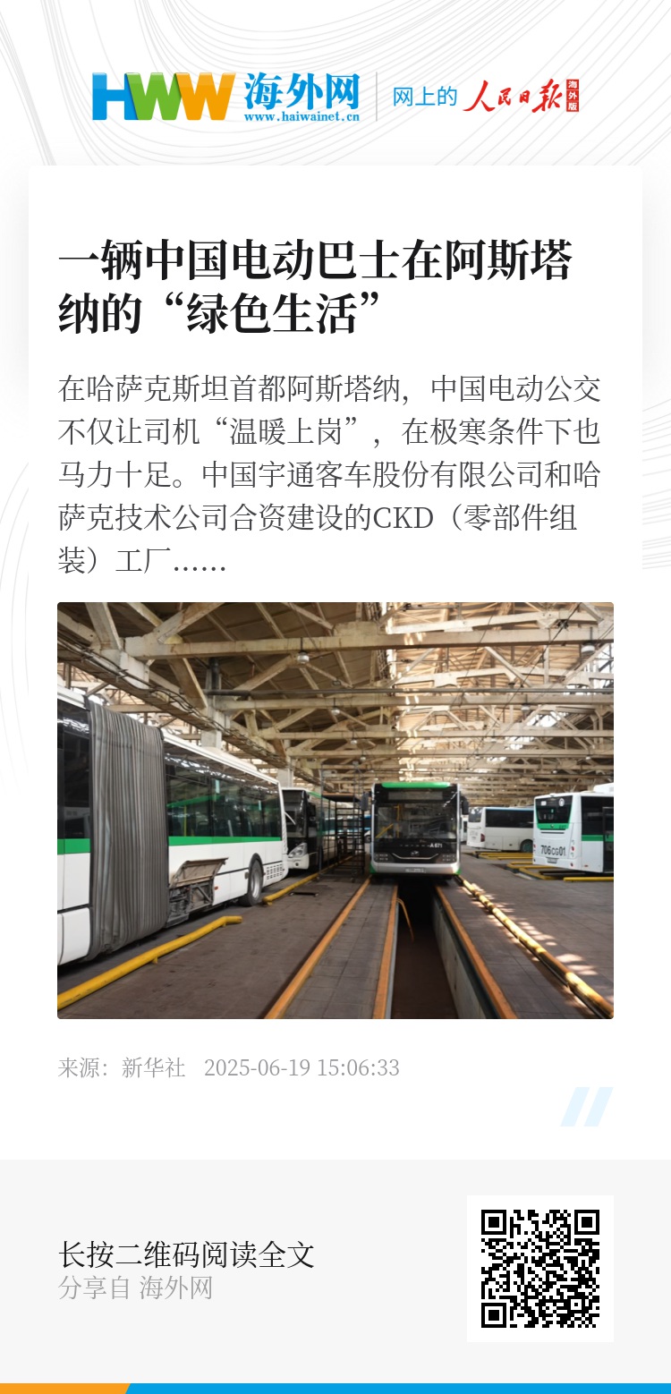 在哈萨克斯坦首都阿斯塔纳,中国电动公交不仅让司机“温暖上岗”,在极寒条件下也马力十足。