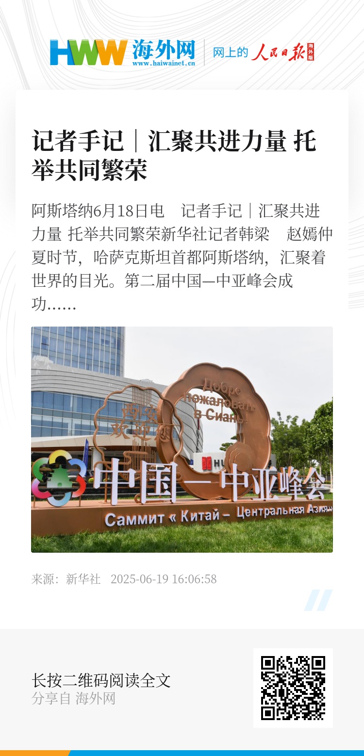 新华社阿斯塔纳6月18日电 记者手记|汇聚共进力量 托举共同繁荣