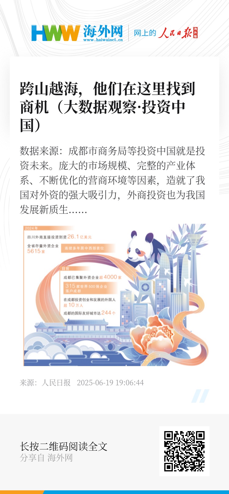 即日起,本版推出“大数据观察·投资中国”系列报道,关注多地吸引外商投资中国的好做法、新故事。首期关注四川成都,这里以独特的文化底蕴、便捷的区位优势、优良的营商环境,吸引外资外商投资兴业、扎根发展。