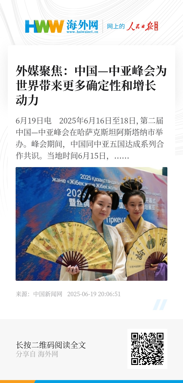 《哈萨克斯坦实业报》认为,第二届中国—中亚峰会意义深远,各方在贸易、交通等多领域取得新成果,进一步加强共建“一带一路”倡议同中亚各国发展战略对接,同时有望加强中国同中亚国家的科学、文化和教育交流,促进各国民众之间的相互了解。