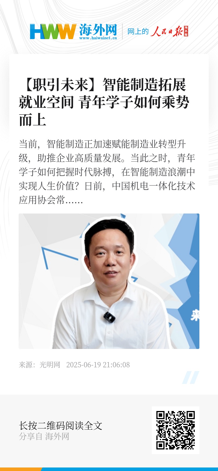 当前,智能制造正加速赋能制造业转型升级,助推企业高质量发展。当此之时,青年学子如何把握时代脉搏,在智能制造浪潮中实现人生价值?