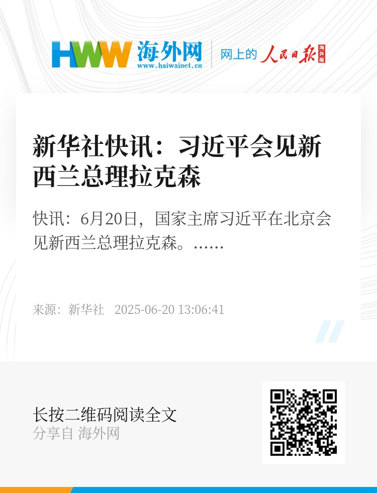 6月20日,国家主席习近平在北京会见新西兰总理拉克森。