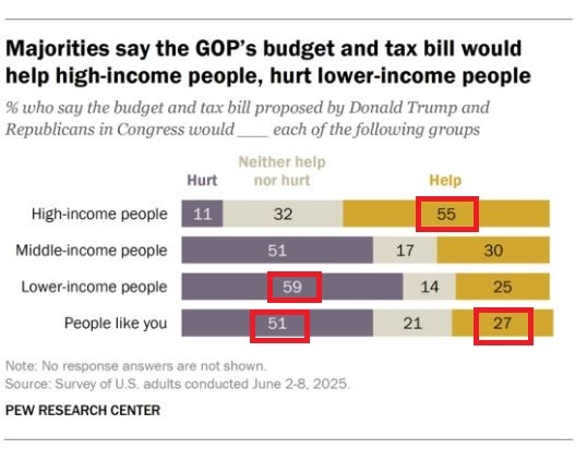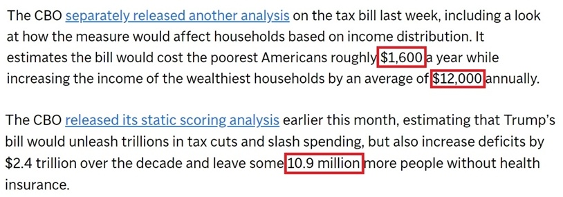 批评人士纷纷指出,“大而美”法案实属“劫贫济富”。它在将大部分利益集中到最富有人群的同时进一步重创了美国本就薄弱的医保体系,将美国民众变成了最大输家。