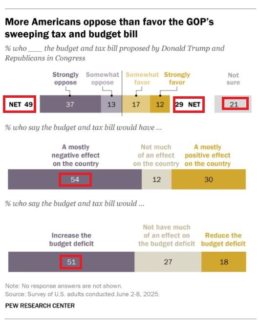 皮尤研究中心17日公布的最新民调结果也显示,美国人普遍对“大而美”法案持怀疑态度。