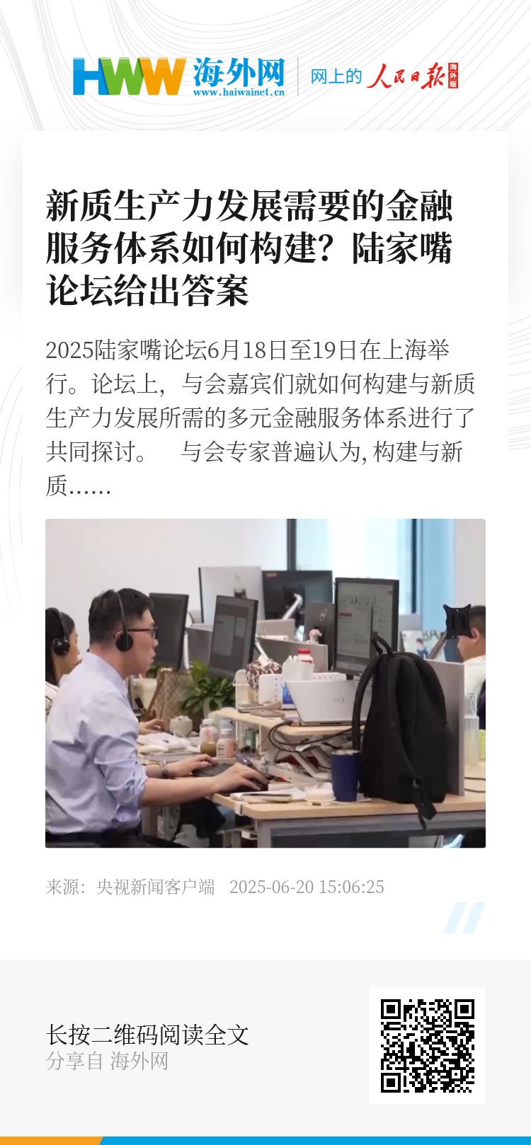 2025陆家嘴论坛6月18日至19日在上海举行。论坛上,与会嘉宾们就如何构建与新质生产力发展所需的多元金融服务体系进行了共同探讨。