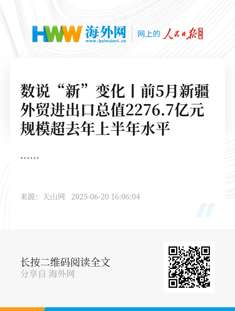 数说“新”变化丨前5月新疆外贸进出口总值2276.7亿元 规模超去年上半年水平