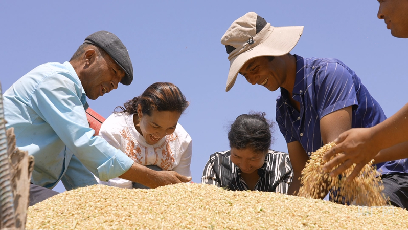 村民拜合热古丽·艾麦提高兴地说:“我今年种了8亩新冬60小麦。从播种到收割,乡里专门安排技术员指导田间管理,保障小麦品质和产量。现在全程机械化收割,省时省力又省钱,预计每亩能收600公斤左右!”