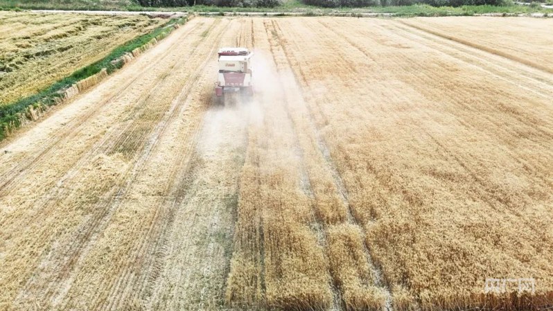收割机正在麦田里来回穿梭,收割金黄饱满的冬小麦 (央广网发 孙季鸿 摄)