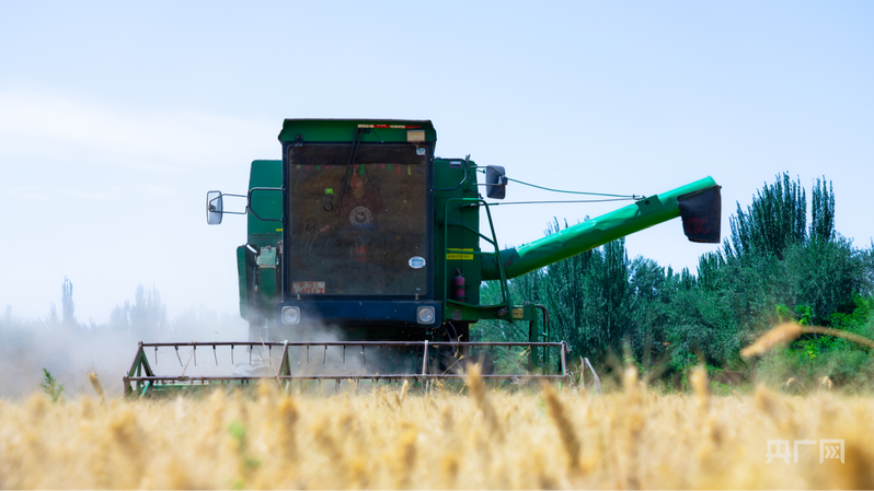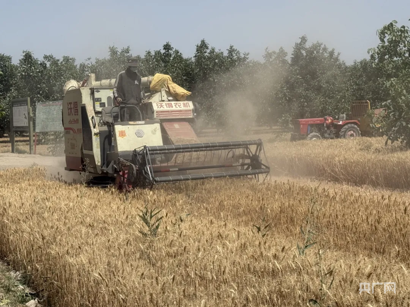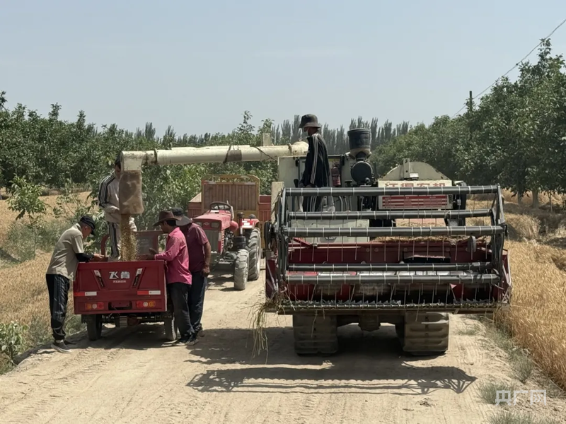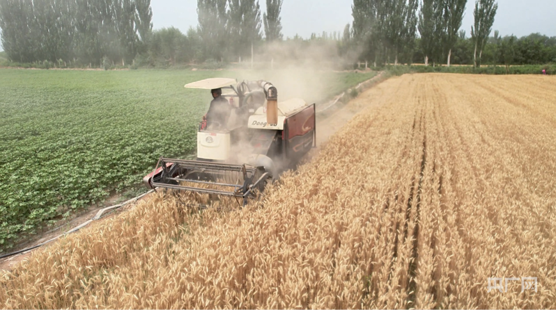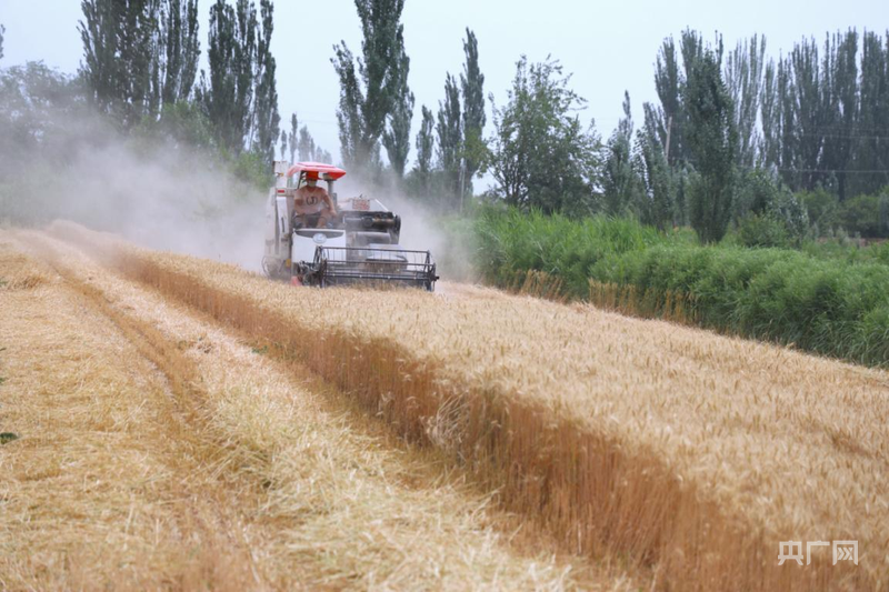 收割机正来回穿梭,奏响夏粮丰收的“交响乐” (央广网发 胡尔西代姆·阿卜拉 摄)