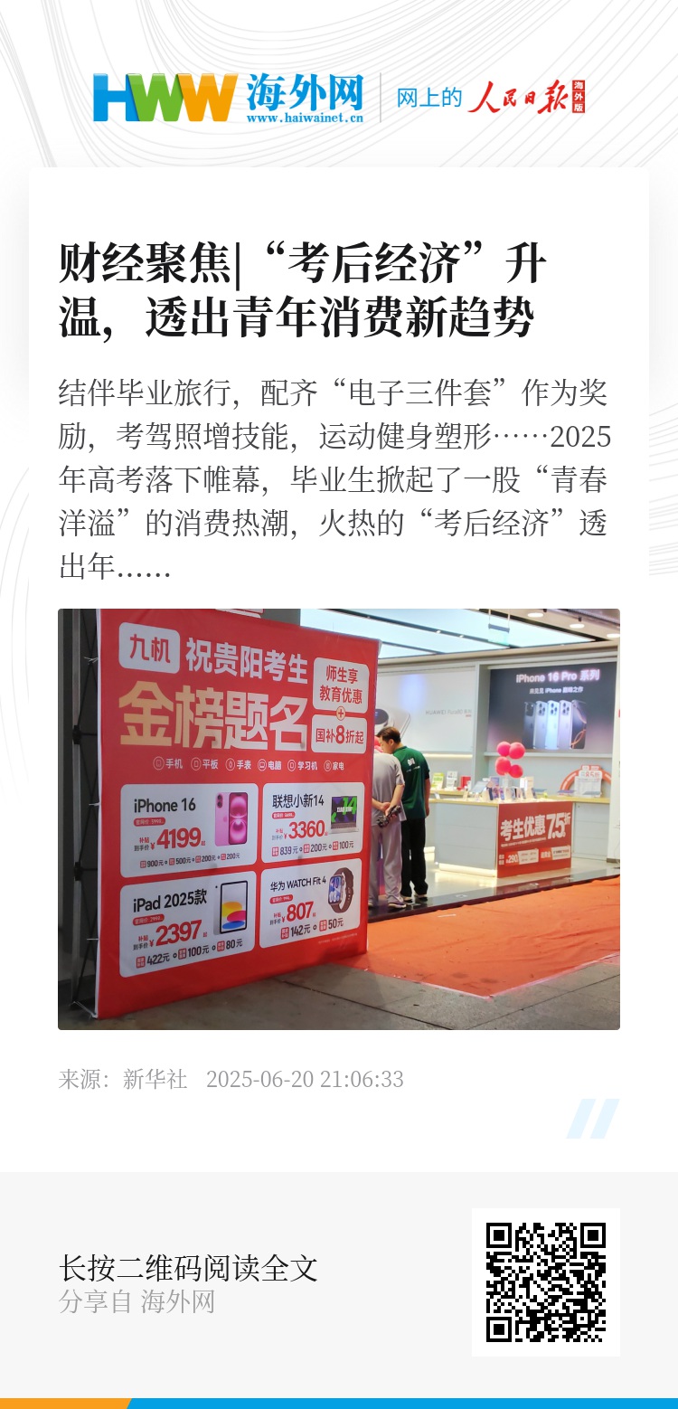 结伴毕业旅行,配齐“电子三件套”作为奖励,考驾照增技能,运动健身塑形……2025年高考落下帷幕,毕业生掀起了一股“青春洋溢”的消费热潮,火热的“考后经济”透出年轻人的消费新趋势。