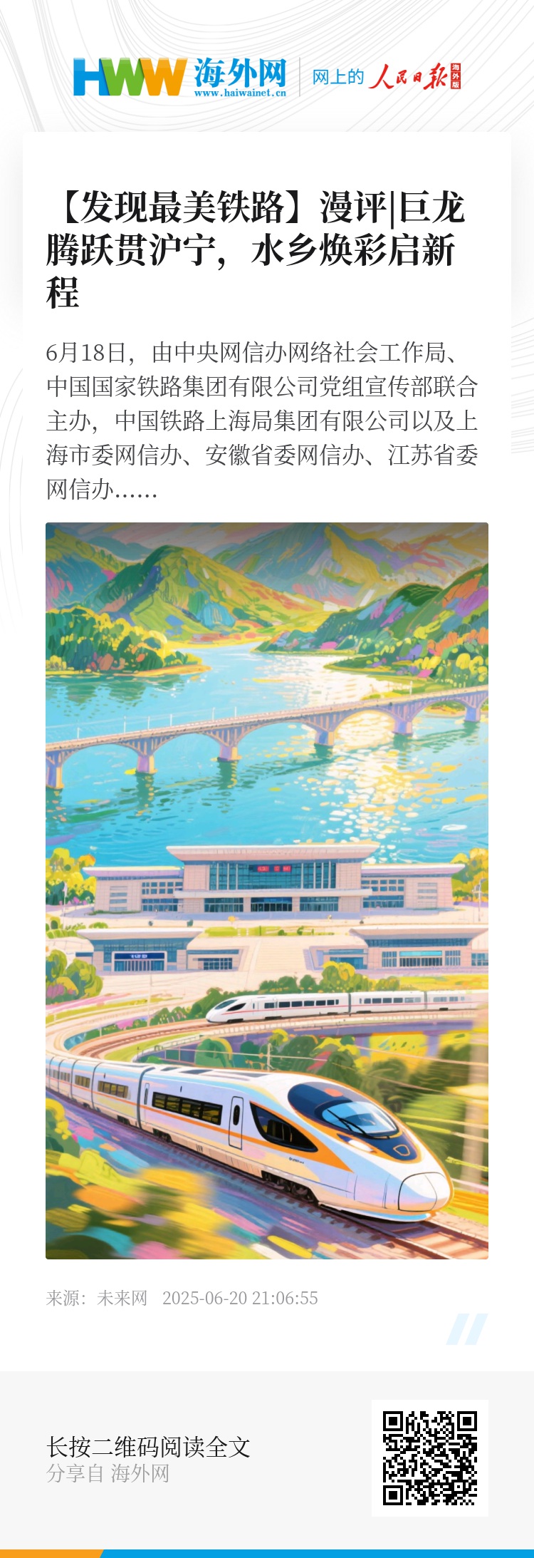 6月18日,由中央网信办网络社会工作局、中国国家铁路集团有限公司党组宣传部联合主办,中国铁路上海局集团有限公司以及上海市委网信办、安徽省委网信办、江苏省委网信办、浙江省委网信办承办的“发现最美铁路·寻梦江南水乡”活动在沪宁沿江高铁西端起点——南京南站正式启动。该活动走进沪宁沿江高铁沿线,深入探访这条“钢铁巨龙”勾勒出的一幅科技与人文交织、时代精神与历史文脉相映生辉的壮美画卷。