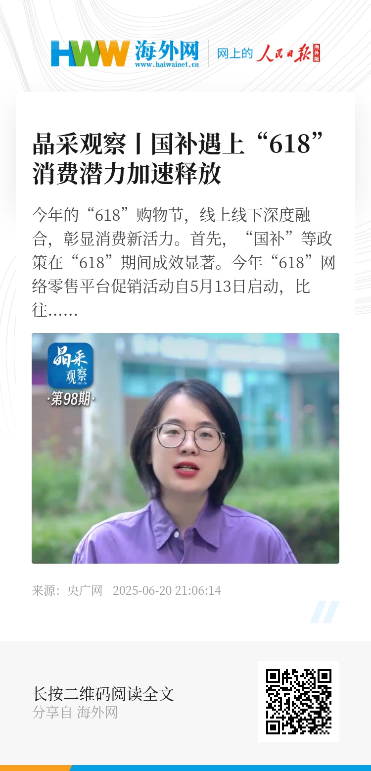 实际上,国补与“618”的相遇,绝非简单的政策与促销叠加,而是以政策杠杆撬动市场活力、以消费节点激活内生动力的有力实践。这不仅印证了消费品“以旧换新”等政策仍在发挥积极效用,更表明“制度红利+市场机制”双轮驱动下,中国消费潜力向纵深释放的必然趋势。相信随着消费升级的拓展、供需两端的持续发力,一定能够为经济行稳致远赋能蓄力。