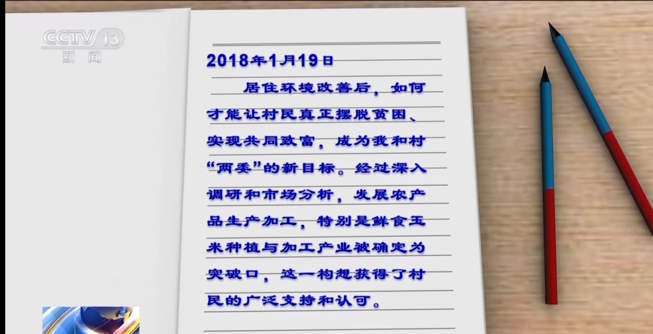 2018年1月19日工作日记:居住环境改善后,如何让村民真正摆脱贫困、实现共同致富,成为我和村“两委”的新目标。经过深入调研和市场分析,发展农产品生产加工,特别是鲜食玉米种植与加工产业被确定为突破口,这一构想获得了村民的广泛支持与认可。