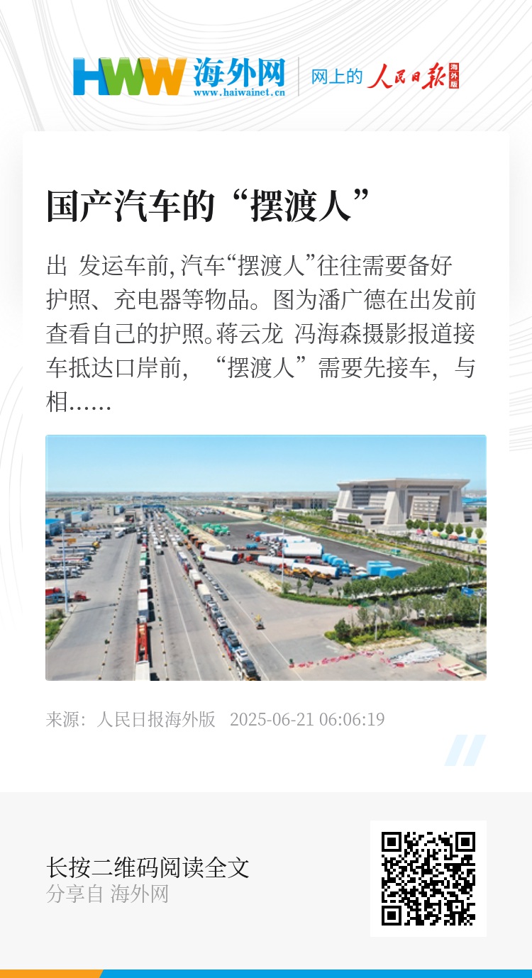52岁的潘广德,是霍尔果斯口岸的一名“摆渡人”。所谓“摆渡人”,就是专门将中国的商品车运往中亚的群体。他们驾驶中国生产的新车,从霍尔果斯出境,将车停到哈萨克斯坦境内指定位置,完成交付验收后,再乘跨国客运大巴返回国内。