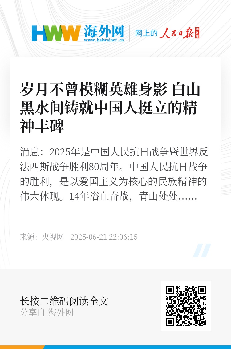 央视网消息:2025年是中国人民抗日战争暨世界反法西斯战争胜利80周年。中国人民抗日战争的胜利,是以爱国主义为核心的民族精神的伟大体现。14年浴血奋战,青山处处埋忠骨,功勋长存史册中。岁月不曾模糊英雄的身影,铁血依旧震撼人民的心灵。