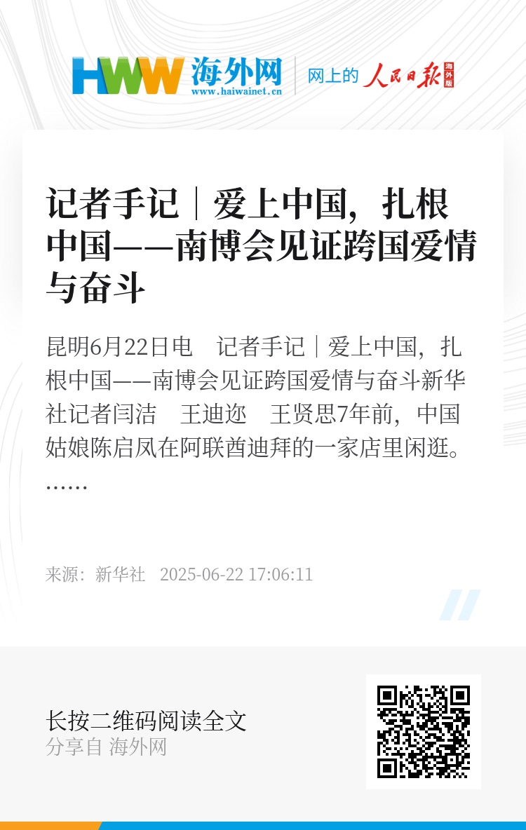 新华社昆明6月22日电 记者手记|爱上中国,扎根中国——南博会见证跨国爱情与奋斗