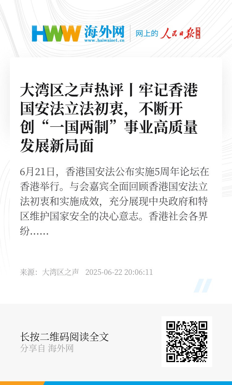 6月21日,香港国安法公布实施5周年论坛在香港举行。与会嘉宾全面回顾香港国安法立法初衷和实施成效,充分展现中央政府和特区维护国家安全的决心意志。香港社会各界纷纷表示,必将团结一致、抢抓机遇、担当作为,更好统筹发展和安全,充分发挥“一国两制”制度优势,不断开创“一国两制”事业高质量发展新局面。