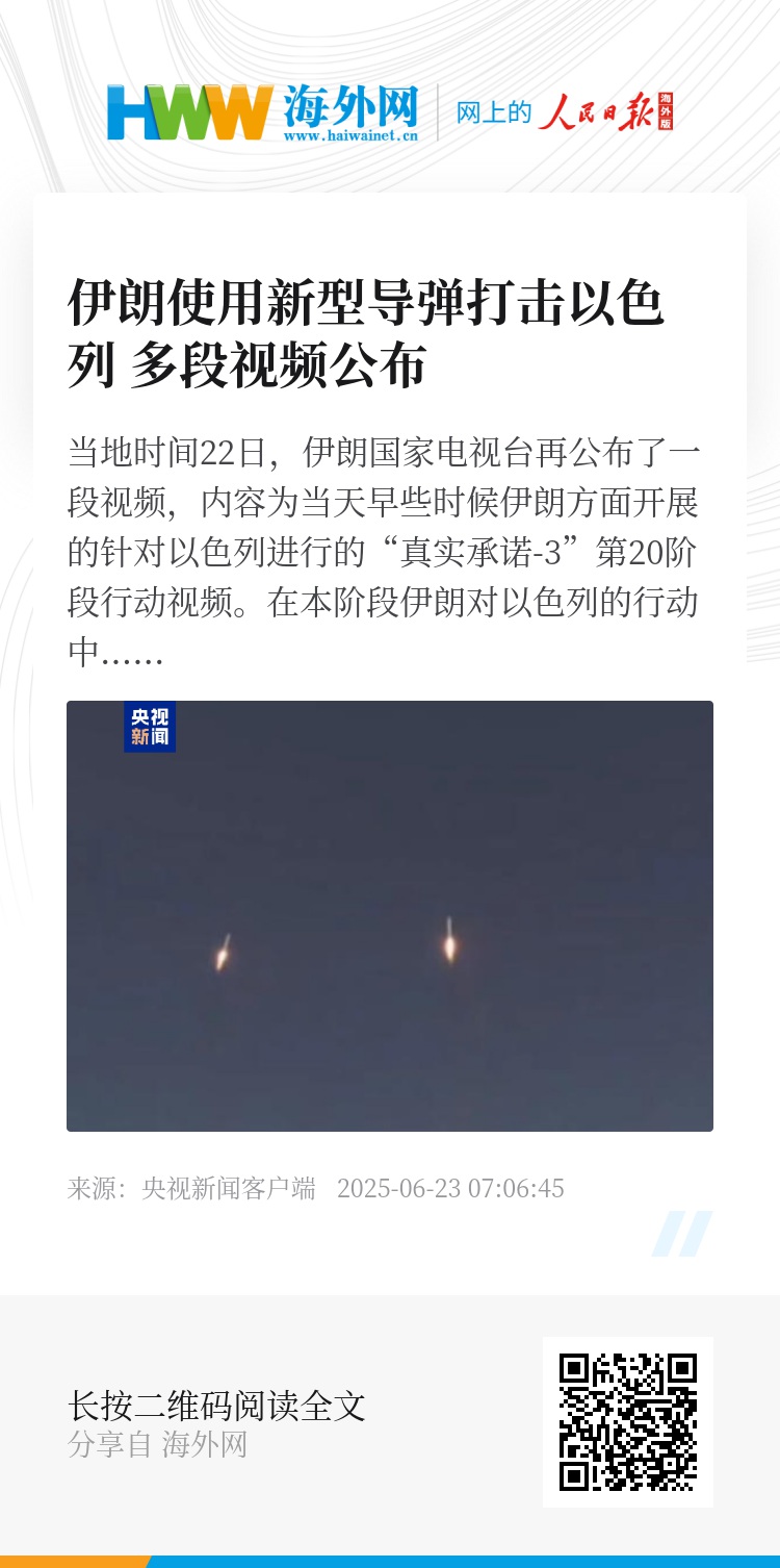 在当地时间6月22日早上对以色列的新一轮导弹袭击中,伊朗首次使用了“海巴尔”导弹。伊朗“真实承诺-3”军事行动发言人也在社交媒体上证实了这一消息。