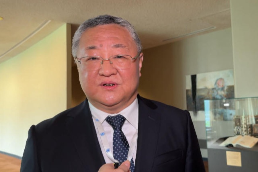 当地时间6月22日,在联合国安理会召开伊朗核设施被美袭击紧急会议前,中国常驻联合国代表傅聪接受记者采访,再次谴责美国对伊朗核设施的打击。