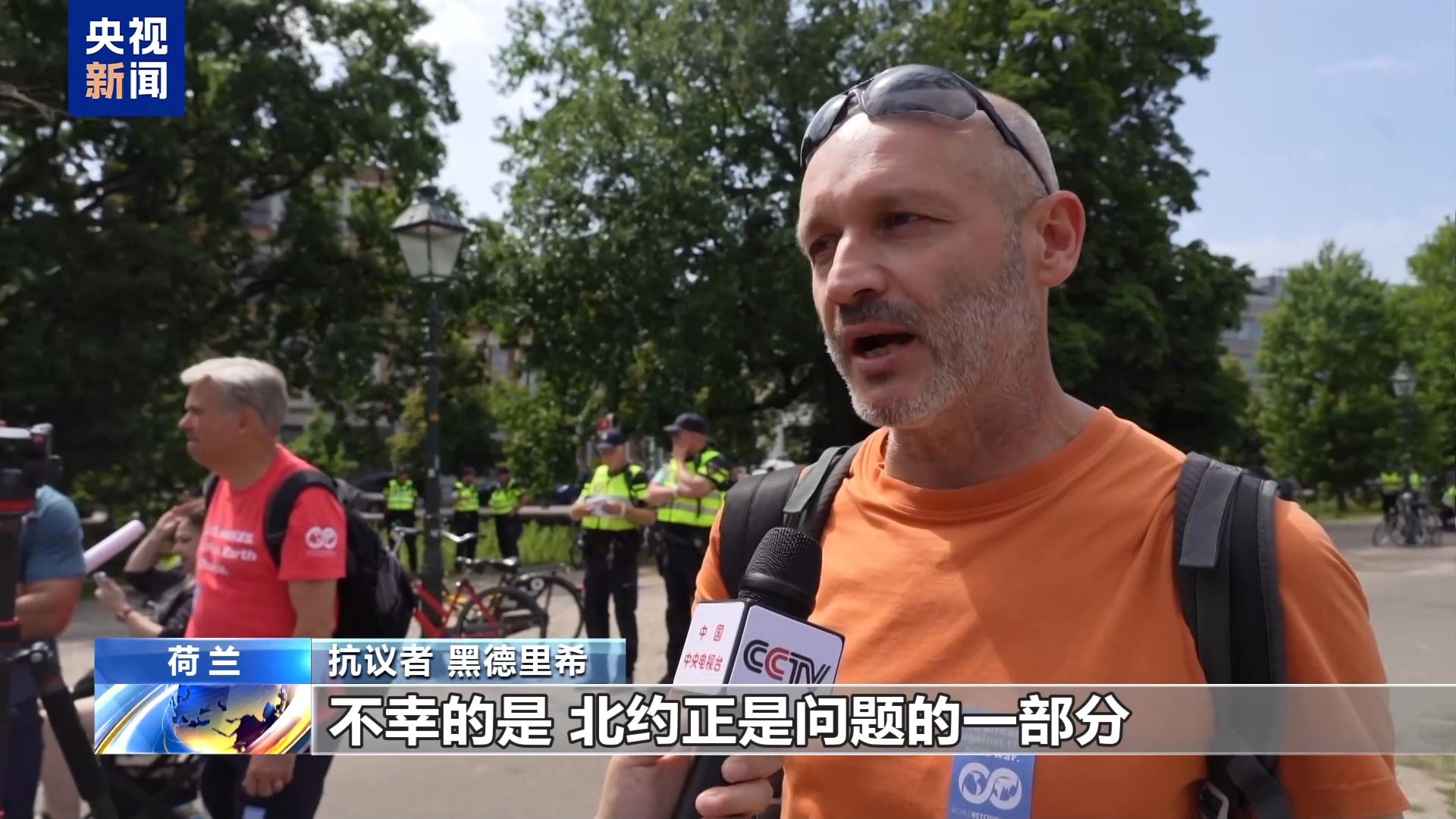 从22日中午开始,参与示威的人群来到位于海牙市中心的库坎普公园。示威者举着包括巴勒斯坦和伊朗国旗在内的各种旗帜以及印有反北约口号的抗议标语,沿着海牙市内主干道一直游行至海牙和平宫。专程从罗马尼亚赶到荷兰参与当天抗议活动的黑德里希告诉总台记者,欧洲人需要的是和平,而不是战争,北约本身在不断引发麻烦,制造冲突。