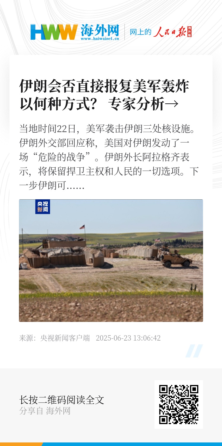 当地时间22日,美军袭击伊朗三处核设施。伊朗外交部回应称,美国对伊朗发动了一场“危险的战争”。伊朗外长阿拉格齐表示,将保留捍卫主权和人民的一切选项。下一步伊朗可能会如何回应?现在伊朗还有哪些选择?