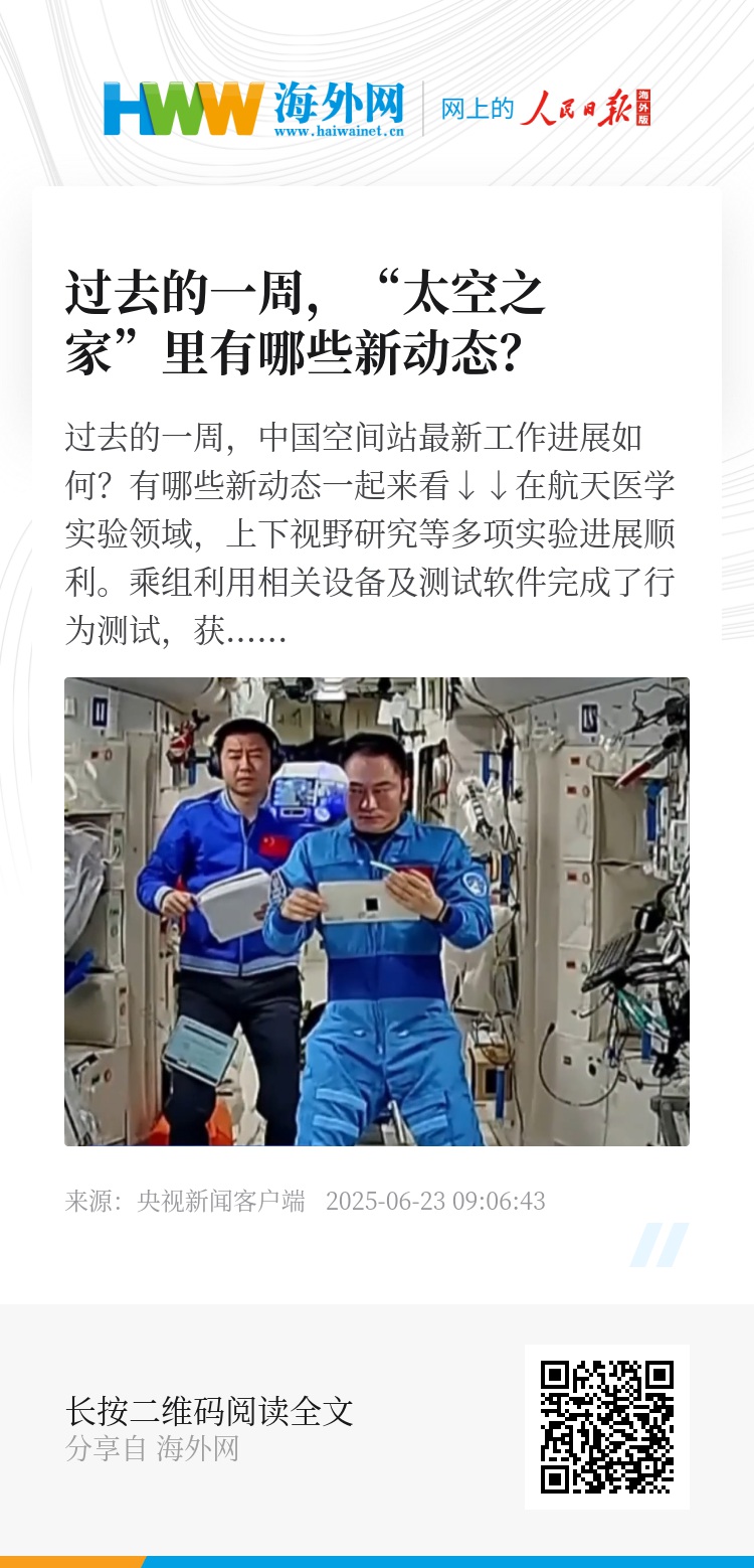 过去的一周,中国空间站最新工作进展如何?有哪些新动态一起来看↓↓