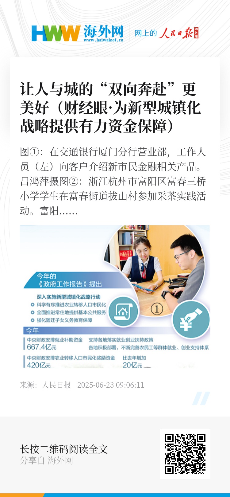 本版推出“为新型城镇化战略提供有力资金保障”栏目,聚焦财政金融政策如何协同发力,促进人与城更好地“双向奔赴”。