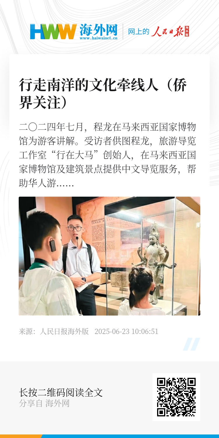 谈及未来,程龙表示希望成为中马文化交流的桥梁:“我想把‘讲好中国故事’融入对华人历史文化的导览服务中。若将来回国,我也会通过线上平台延续这份事业。”(江 悦)