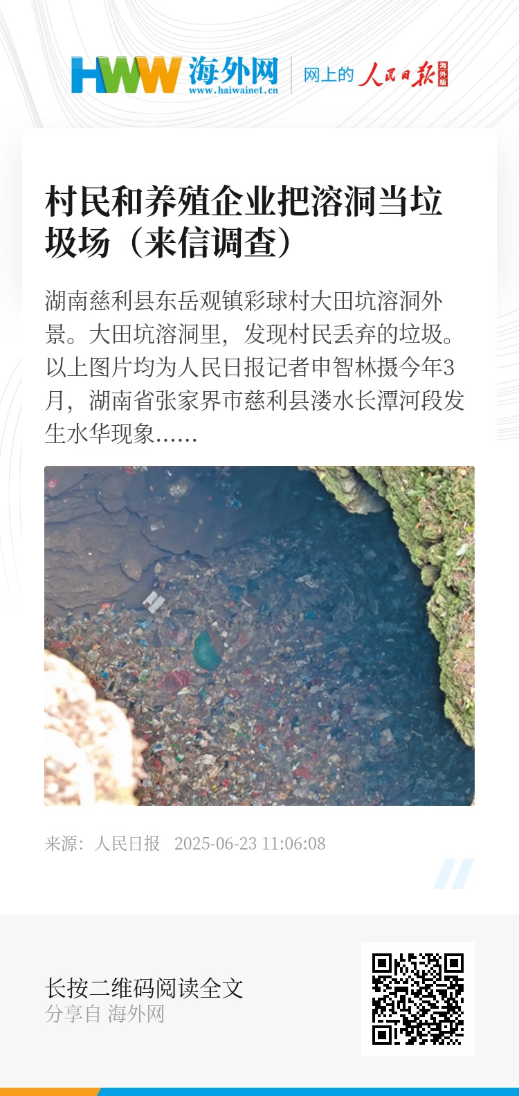 截至6月15日17时,慈利县共摸排岩溶洞穴2079个,发现部分岩溶洞穴存在疑似污染物。目前,溶洞污染的清理工作正在推进,但还面临专业人员紧缺、作业难度较大等困难。当地群众呼吁健全监管机制、补齐政策短板、强化源头治理,防止溶洞成为监管盲区。