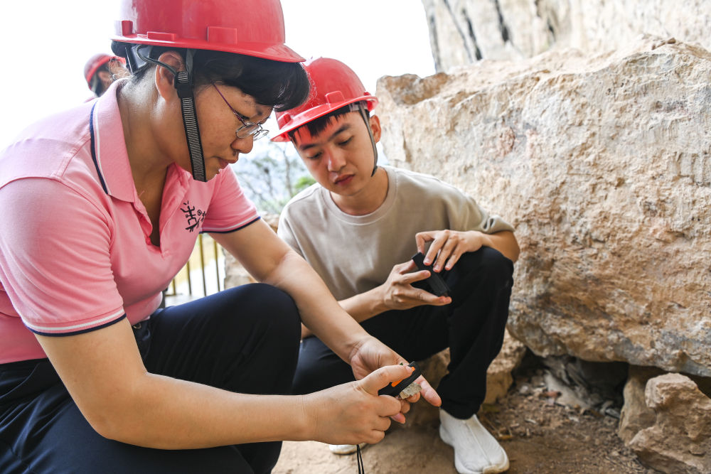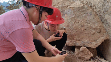 ↑对风化崩落的岩石进行检测