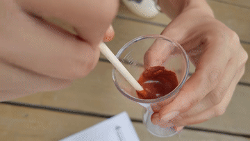 ↑6月19日,在位于广西宁明县的一处花山岩画,工作人员对调配的颜料进行测试。