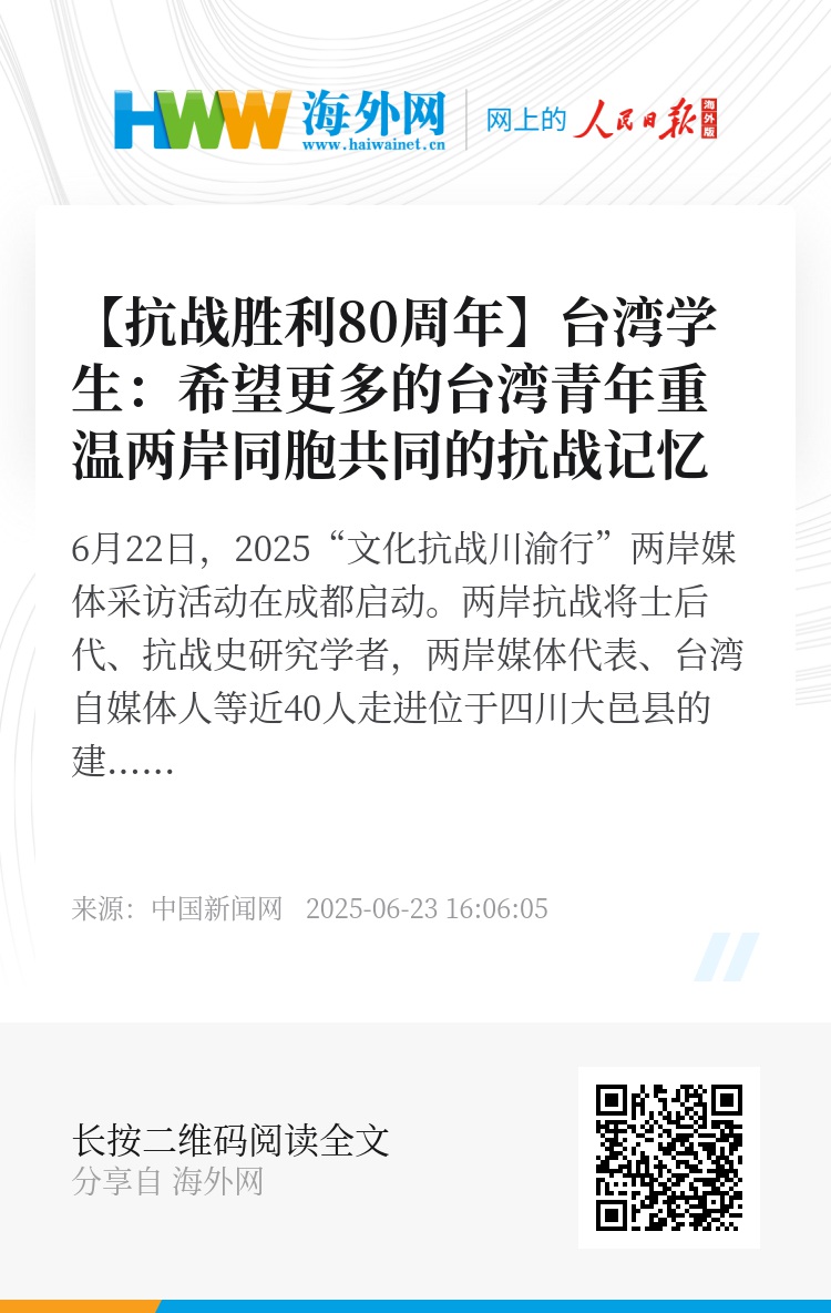6月22日,2025“文化抗战川渝行”两岸媒体采访活动在成都启动。两岸抗战将士后代、抗战史研究学者,两岸媒体代表、台湾自媒体人等近40人走进位于四川大邑县的建川博物馆聚落参观。
