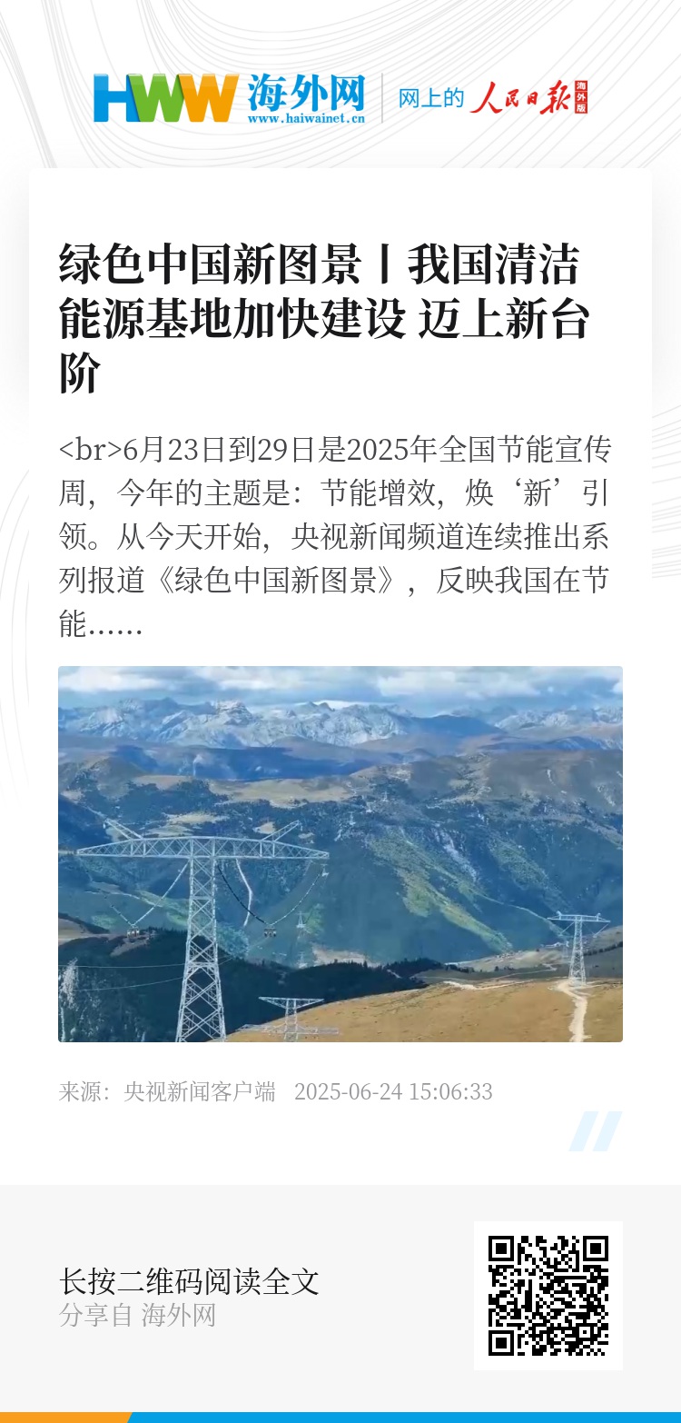 6月23日到29日是2025年全国节能宣传周,今年的主题是:节能增效,焕‘新’引领。从今天开始,央视新闻频道连续推出系列报道《绿色中国新图景》,反映我国在节能降碳领域发生的新变化。
