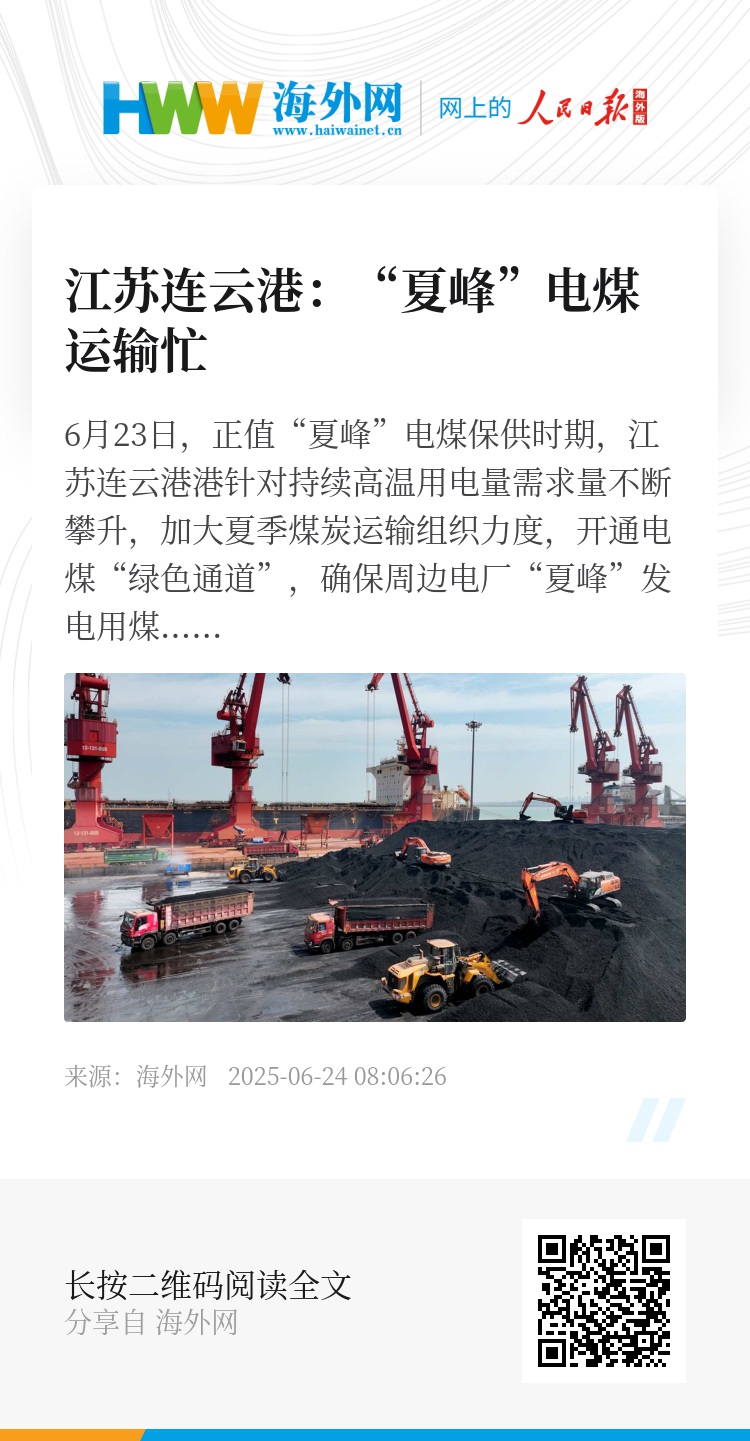 6月23日,正值“夏峰”电煤保供时期,江苏连云港港针对持续高温用电量需求量不断攀升,加大夏季煤炭运输组织力度,开通电煤“绿色通道”,确保周边电厂“夏峰”发电用煤需求。图源:IC photo