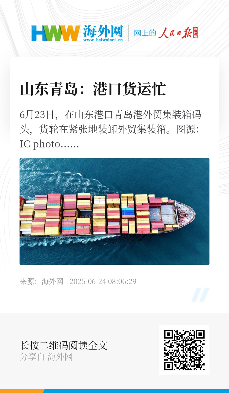 32873296,.山东青岛:港口货运忙,.2025-06-24 08:42:29,.204555,.陈菲扬、张荣耀