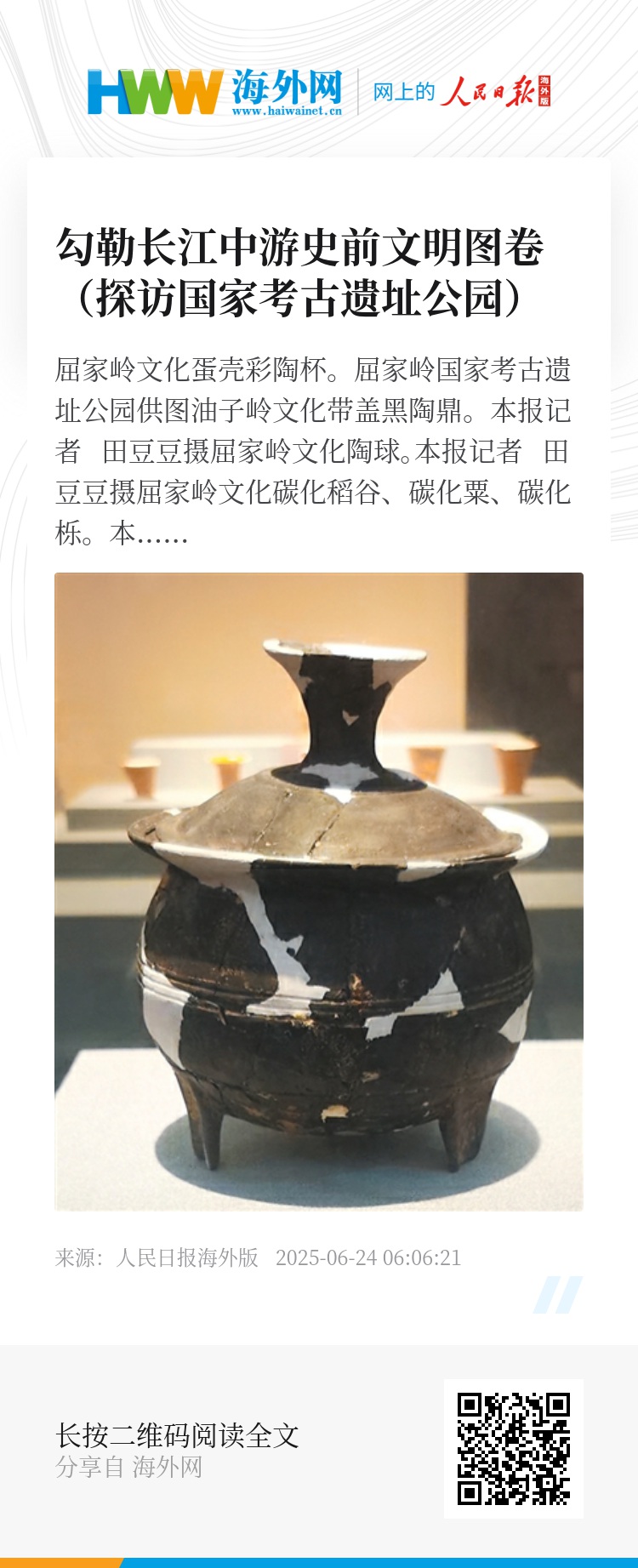 射箭比赛、汉服舞蹈、陶艺体验……屈家岭国家考古遗址公园里,丰富多彩的活动吸引越来越多的青少年走近文物古迹,感受传统文化,领略中华文明源远流长、生生不息的魅力。(本报记者 田豆豆)