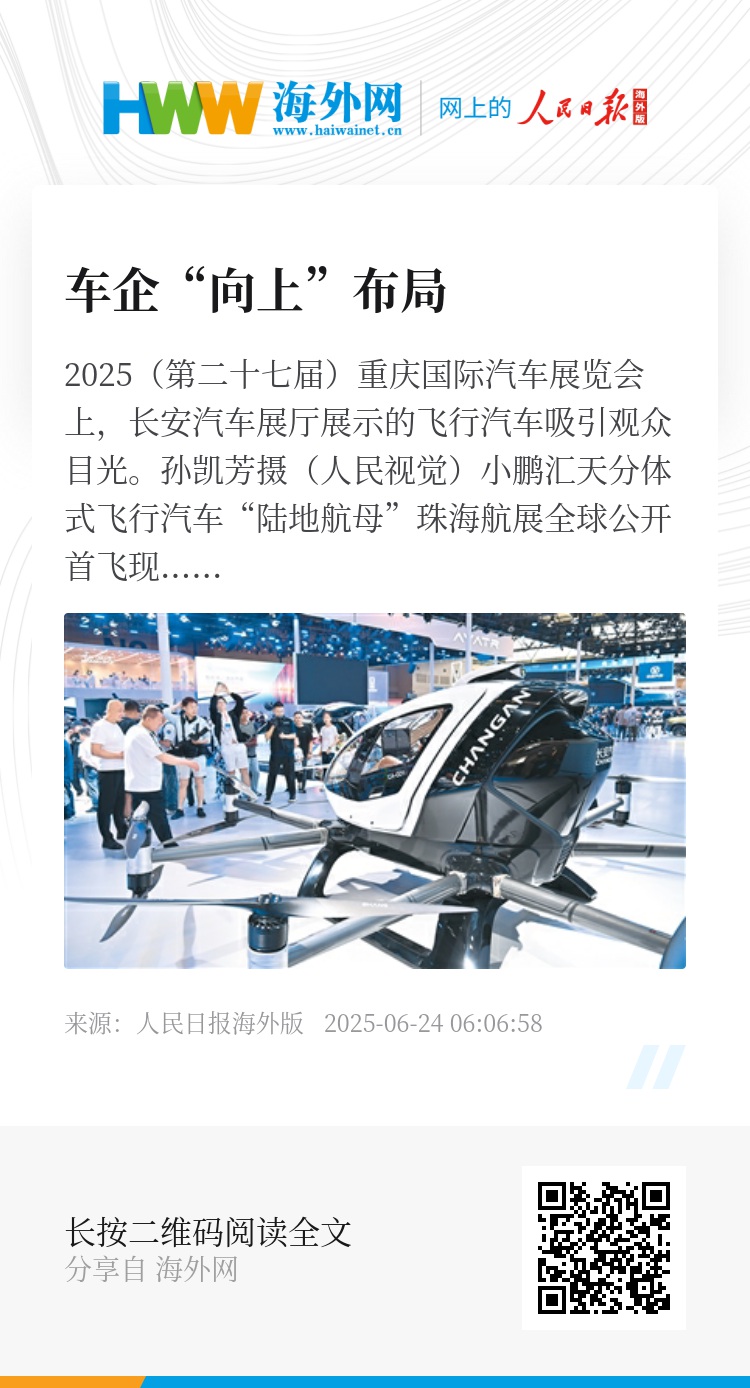 2025(第二十七届)重庆国际汽车展览会上,长安汽车展厅展示的飞行汽车吸引观众目光。孙凯芳摄(人民视觉)