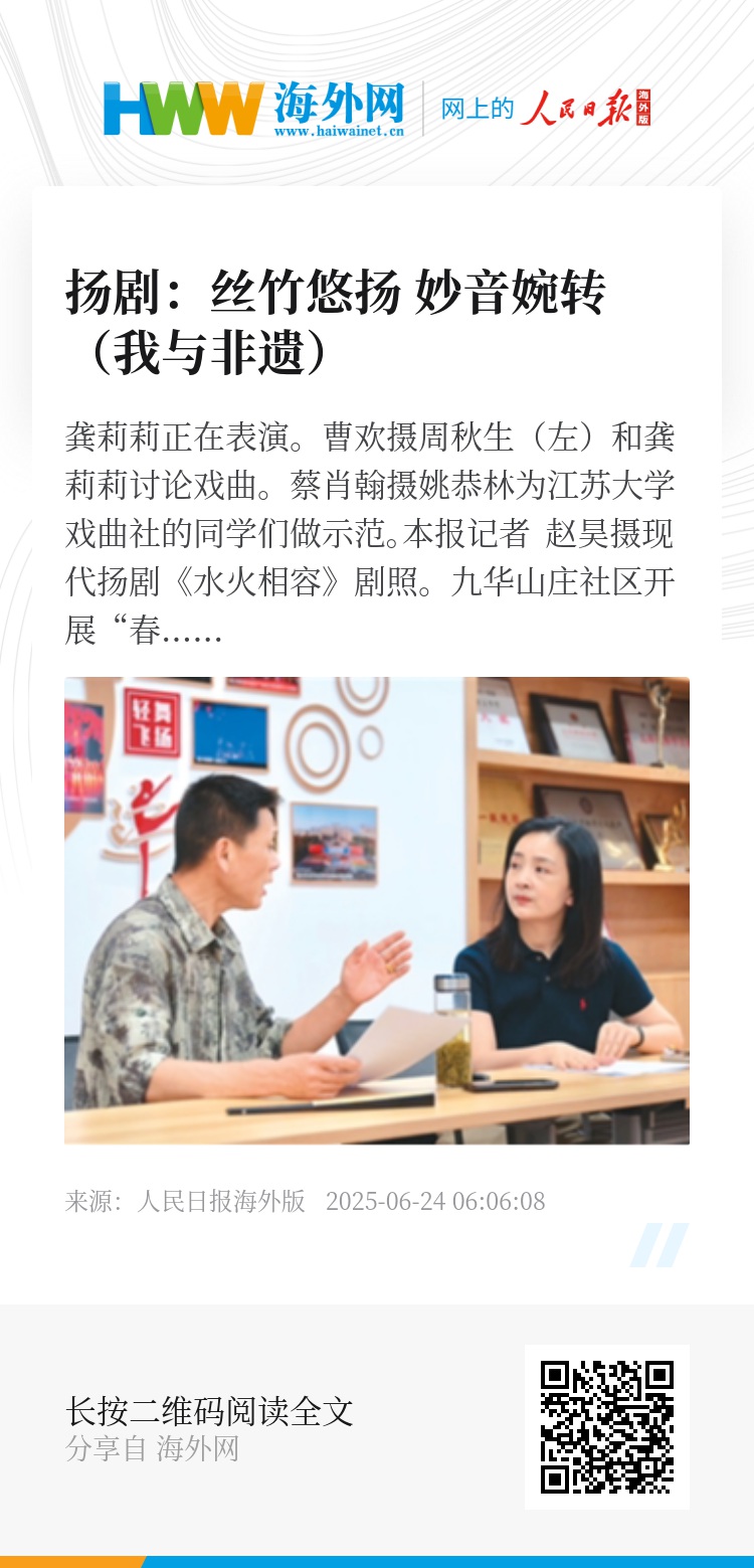 “未来,我们将继续推进戏曲进校园、进社区活动,让更多年轻人爱上扬剧,同时积极向海外留学生宣介,推动扬剧‘出海’。”龚莉莉说。(本报记者 赵昊)