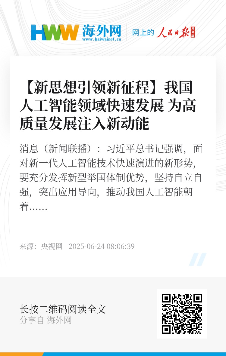 今年以来,我国人工智能热潮持续涌动,正以前所未有的速度向经济社会各领域渗透赋能。在政策引导、技术创新和产业融合等多轮驱动下,人工智能正为高质量发展注入强劲动能。